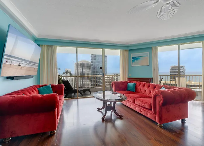 The 170 m² Stylish 1Br Beachside Escape - Heart Of Gold Coast apartment is located 2.3 km from the Southport Broadwater Parklands and about a 25-minute walk from The Rockpools. Wi-Fi is provided for both business and leisure activities.